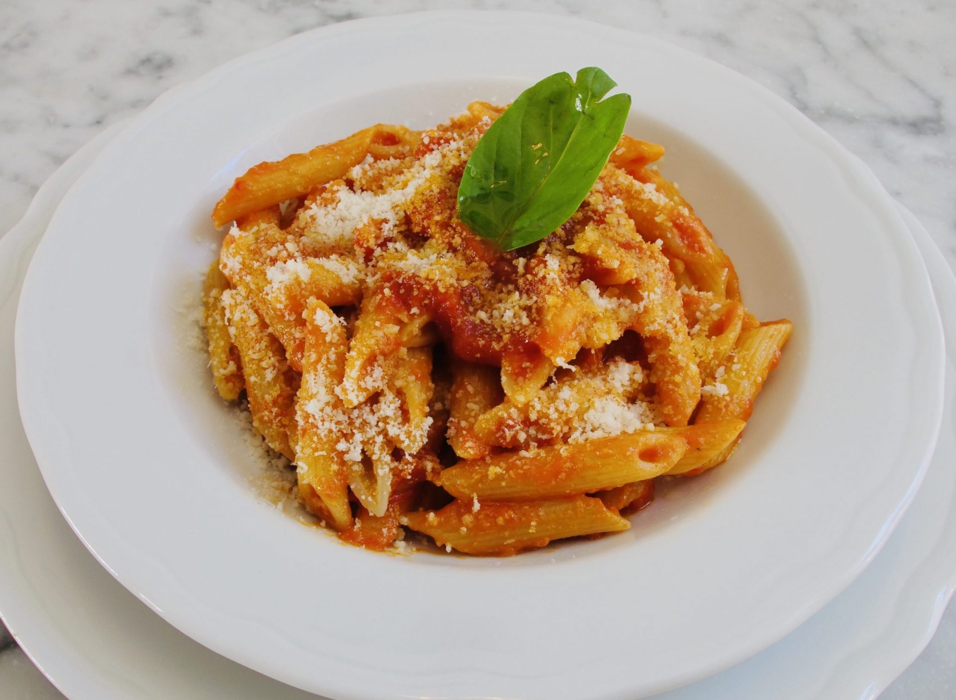 Penne Pasta with Tomatoes Sauce and Grated Parmesan Cheese